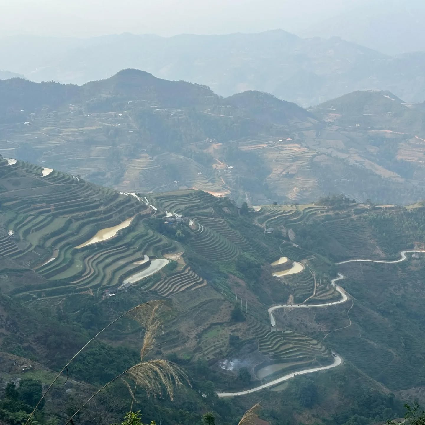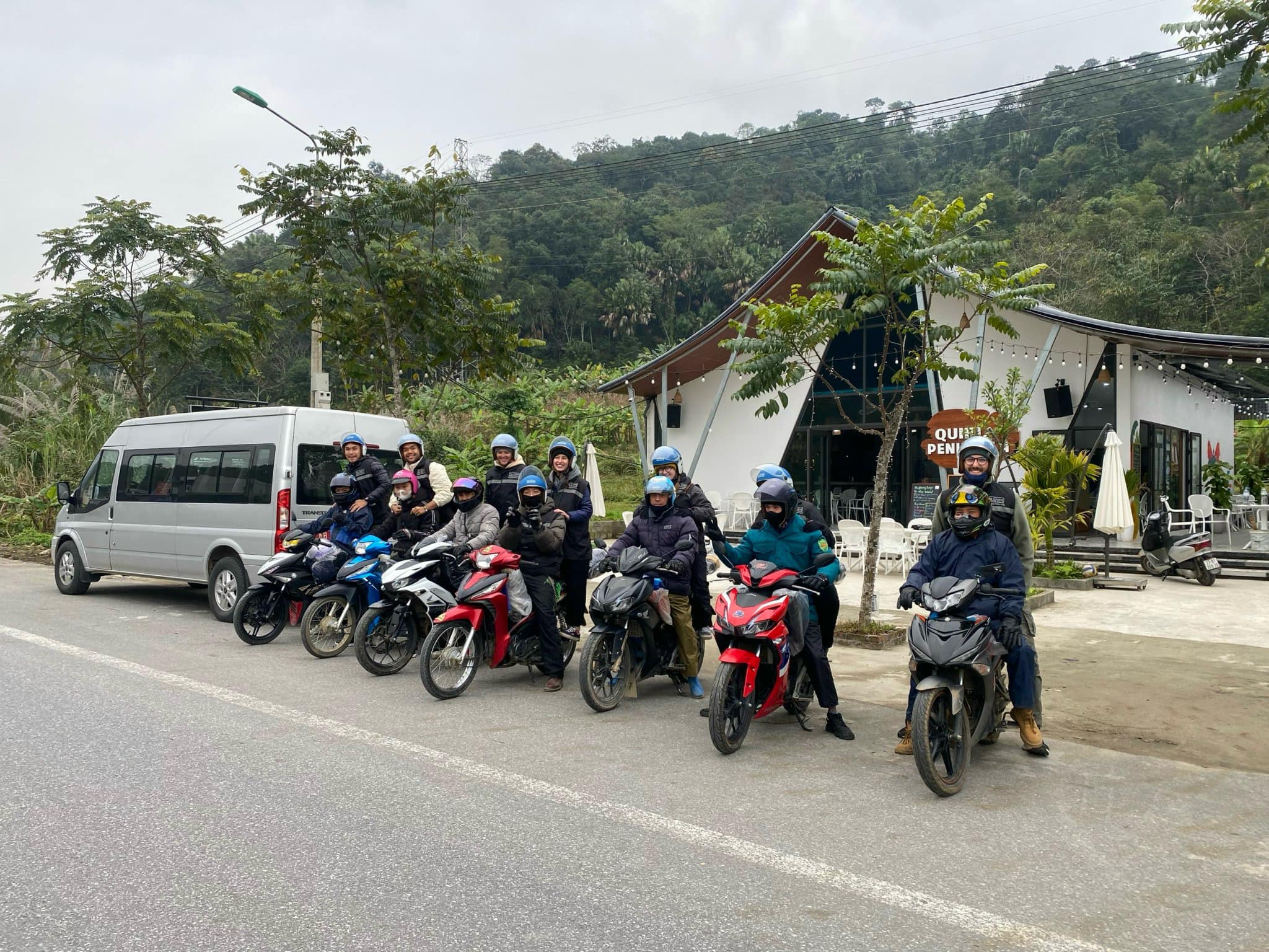 The bus stops at Tuyen Quang City for a break.