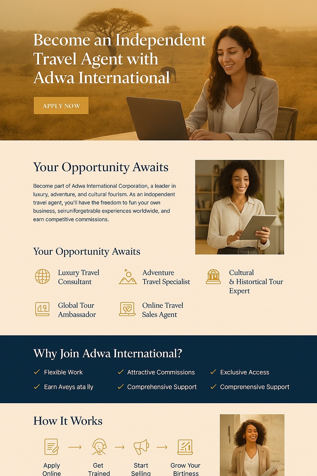 At Adwa International Corporation, we believe travel is more than just visiting new places—it’s about creating life-changing experiences, fostering cultural understanding, and building lasting connections. As an independent travel agent with us, you’ll have the freedom to run your own business while enjoying the strength, resources, and reputation of our global brand.